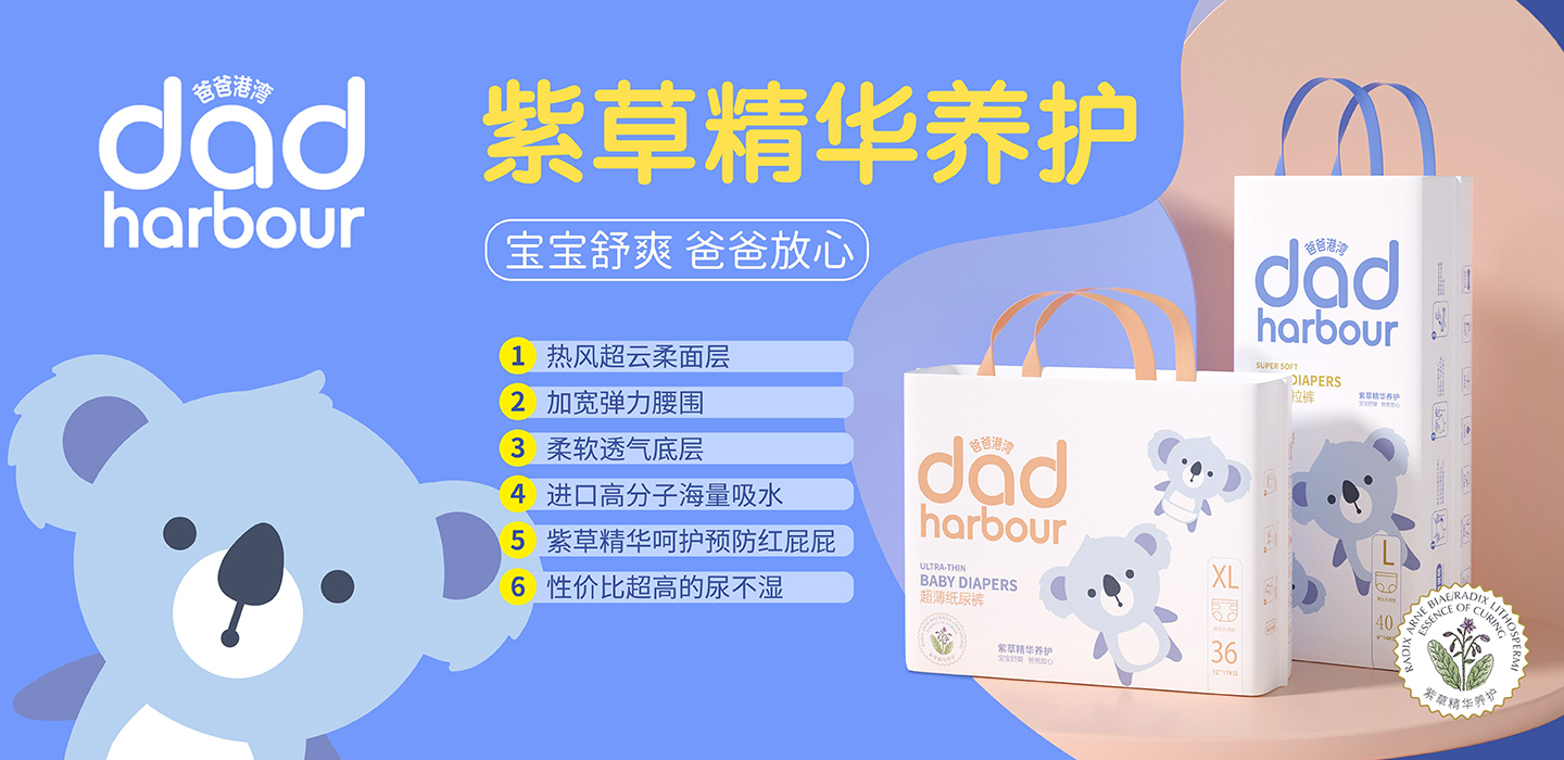品牌名稱(chēng):爸爸港灣 主營(yíng)產(chǎn)品:爸爸港灣紙尿褲,爸爸港灣拉拉褲 品牌特色:萃取天然紫草精華 抑菌守護(hù)