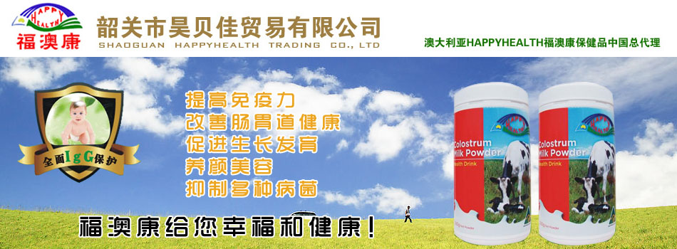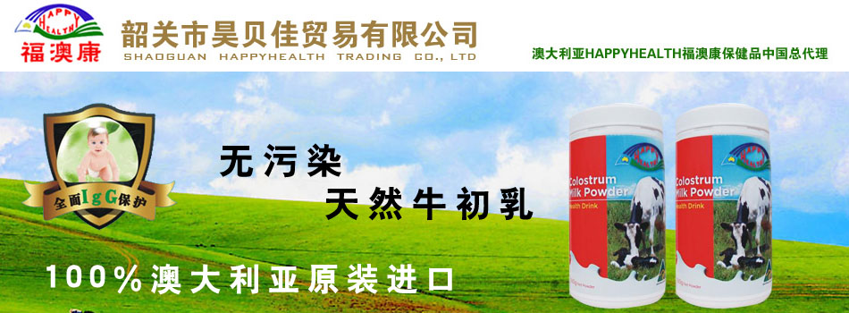 昊貝佳(韶關(guān))貿(mào)易有限公司主要從事母嬰食品和營養(yǎng)保健品的進(jìn)出口貿(mào)易,是澳大利亞Auzziehealth產(chǎn)品有限公司著名品牌Happyhealthy“福澳康”在中國的總代理,所有產(chǎn)品都是100%原裝進(jìn)口,昊貝佳全權(quán)負(fù)責(zé)Happyhealthy“福澳康”純天然健康食品在中國的市場開拓和銷售服務(wù)。Auzziehealth產(chǎn)品有限公司是澳大利亞久負(fù)盛名的保健產(chǎn)品生產(chǎn)企業(yè)之一,在健康產(chǎn)品原材料的栽培、養(yǎng)殖和研發(fā)、生產(chǎn)等諸多方面,一直處于澳大利亞行業(yè)的領(lǐng)先地位,無論在澳大利亞國內(nèi)或在海外地區(qū),其產(chǎn)品都有著很大的市場占有率。加上先進(jìn)的高科技生產(chǎn)設(shè)備,其產(chǎn)品不論從原料的栽種或收成,到產(chǎn)品的制造加工包裝,每一個環(huán)節(jié)均符合澳大利亞及國際GMP標(biāo)準(zhǔn)。公司致力于為亞洲市場特別是中國市場研制和開發(fā)適合各年齡階段的乳制品、保健品,所有產(chǎn)品原料全部源自于澳大利亞境內(nèi)農(nóng)牧場,牧場位于澳大利亞東南沿海新南威爾市州的貝佳(BEGA)大峽谷,毗鄰維多利亞州,是澳大利亞氣候最溫和、年降雨量最充沛的畜牧業(yè)區(qū),一年四季鮮嫩的綠草飼喂著健壯的牛群。州政府食品管理局定期對牧場進(jìn)行衛(wèi)生標(biāo)準(zhǔn)測試,保證牧區(qū)的衛(wèi)生狀況絕對符合嚴(yán)格的管理要求。