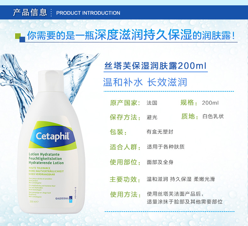 絲塔芙保濕潤(rùn)膚露溫和的弱酸護(hù)膚配方,質(zhì)地輕薄近乎零刺激。還能在皮膚的角質(zhì)層上留下一層保護(hù)屏障,有效的修護(hù)肌膚屏障,防止肌膚水分的流失,同時(shí)還能調(diào)和老化以及干燥肌膚,幫助修護(hù)曬傷肌膚,持久鎖住肌膚的水分,提高肌膚水分的滲透力,補(bǔ)充肌膚角質(zhì)層的水分和養(yǎng)分,舒緩皮膚的干燥,為肌膚不斷的補(bǔ)充活力。