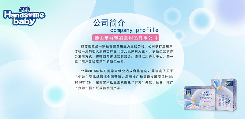 佛山市群芳嬰童用品有限公司是一家經(jīng)營嬰童用品為主的公司,公司以打造用戶體驗一流的嬰兒消費類產(chǎn)品(嬰兒紙尿褲為主),以新型營銷作為發(fā)展方式,將微商與傳統(tǒng)營銷結(jié)合;堅持以用戶為中心,是一家“用戶體驗驅(qū)動”的新型公司。