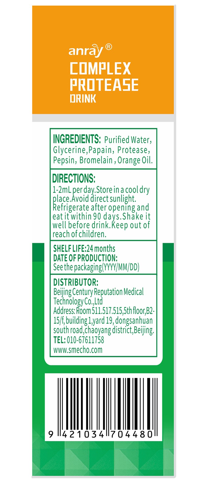 【配料】木瓜蛋白酶(3.26%)、蛋白酶(0.08%)、胃蛋白酶(0.01%)、菠蘿蛋白酶(0.01%)、水、甘油、甜橙油