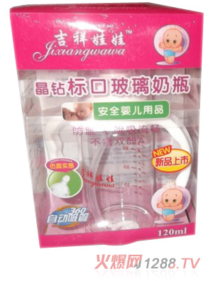 吉祥娃娃是香港吉祥娃娃嬰童用品有限公司的品牌,主營(yíng)的產(chǎn)品主要有吉祥娃娃晶鉆玻璃標(biāo)口奶瓶、晶鉆玻璃寬口奶瓶、寬口玻璃防燙奶瓶、pp材質(zhì)奶瓶、嬰幼兒奶嘴等多個(gè)輔喂產(chǎn)品系列,設(shè)計(jì)美觀,使用方便,且物美價(jià)廉。