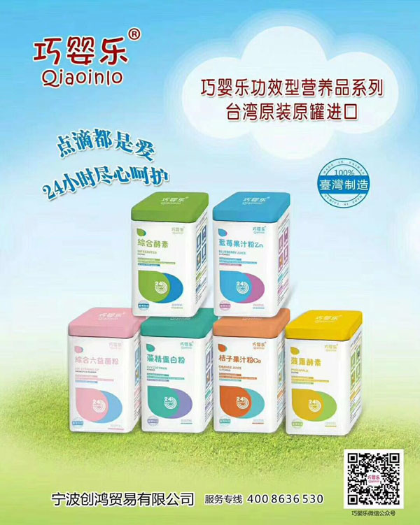 巧嬰樂(lè)嬰幼兒全系列營(yíng)養(yǎng)品,屬功效型產(chǎn)品,選材精良,配方科學(xué),對(duì)嬰幼兒消化道系統(tǒng)、呼吸道系統(tǒng)、免疫力系統(tǒng)等非天性遺傳癥狀的解決及礦物質(zhì)的補(bǔ)充吸收,都有顯著效果。