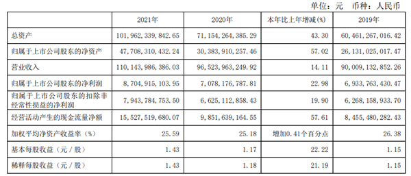 剛剛,伊利發(fā)布2021年度報告,報告期內實現(xiàn)營業(yè)總收入 1,105.95 億元,較上年同期增長 14.15%,凈利潤 87.32 億元, 較上年同期增長 23.00%。