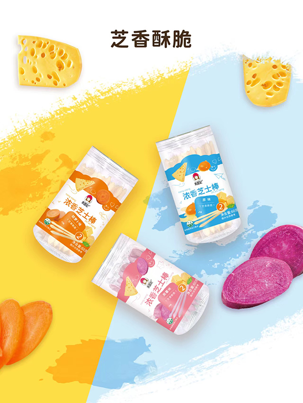 果蔬妃【濃香芝士棒】是一款芝士含量大于6%的手指棒棒零食,芝香酥脆,采用海藻糖配方,清甜奶香,還能補(bǔ)充鈣質(zhì);獨(dú)立包裝,方便衛(wèi)生,有原味、紫薯和胡蘿卜三種口味,適合作為12個(gè)月以上寶寶的抓握小零食。