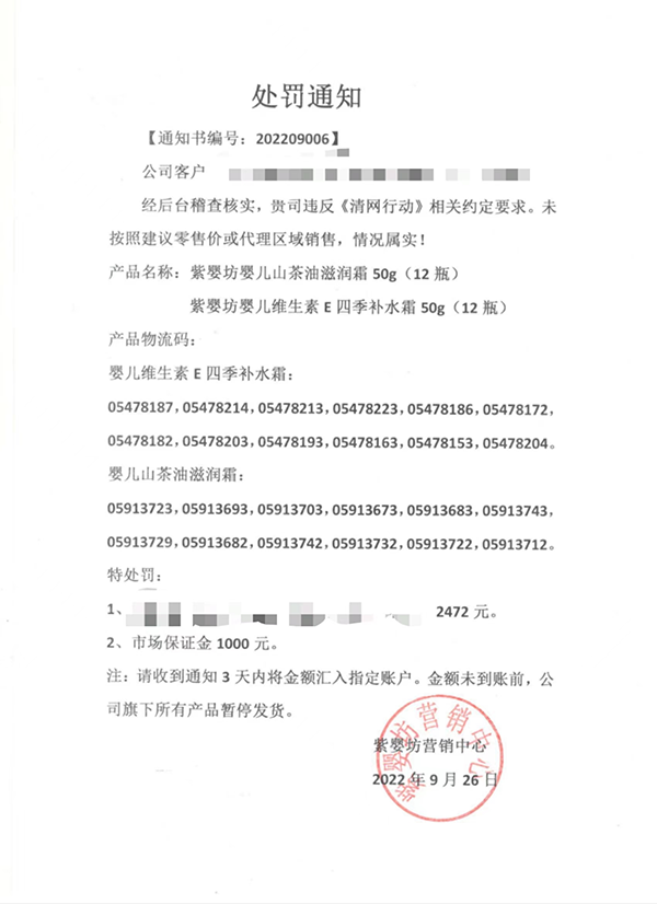 從實施以來,紫嬰坊已經(jīng)對數(shù)十起違反相關(guān)條約的責(zé)任人,做出警告、罰款及終止合作等處罰,針對不遵守規(guī)則、不顧及他人利益的代理商,紫嬰坊絕不手軟。一張張?zhí)幜P單就能看出紫嬰坊嚴(yán)打的決心。