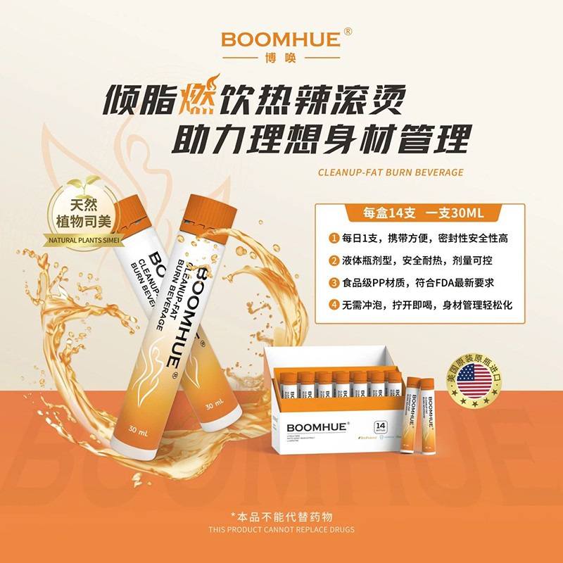 BOOMHUE博喚傾脂燃飲采用獨(dú)特的液體瓶劑型設(shè)計(jì),告別傳統(tǒng)產(chǎn)品的瓶瓶罐罐,攜帶更方便。同時(shí)消費(fèi)者無需害怕巨大的藥丸吞服體驗(yàn),只需輕輕擰開瓶蓋,即可直接飲用,無需沖泡或攪拌,口感酸甜好喝,將身材管理日常化、零食化,為身材管理帶來更輕松的選擇。